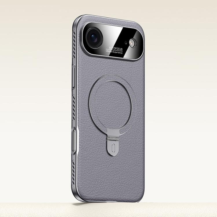 For iPhone Air Electroplated PC Cooling Leather Holder MagSafe Phone Case(Grey)