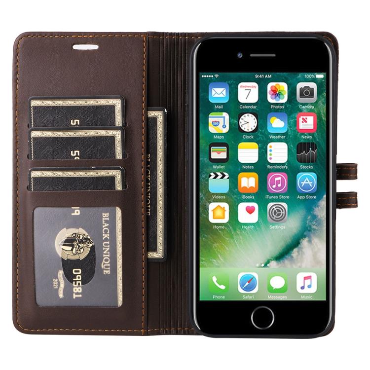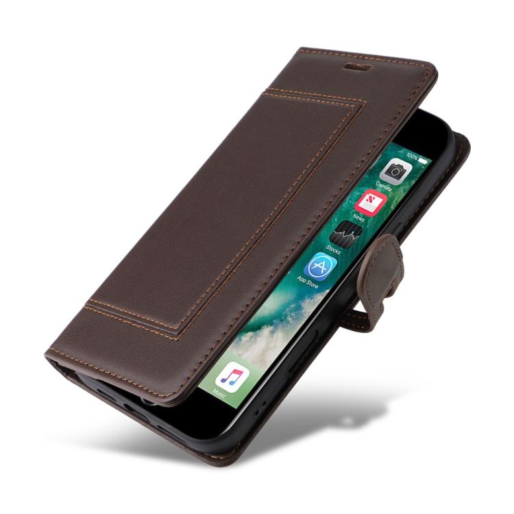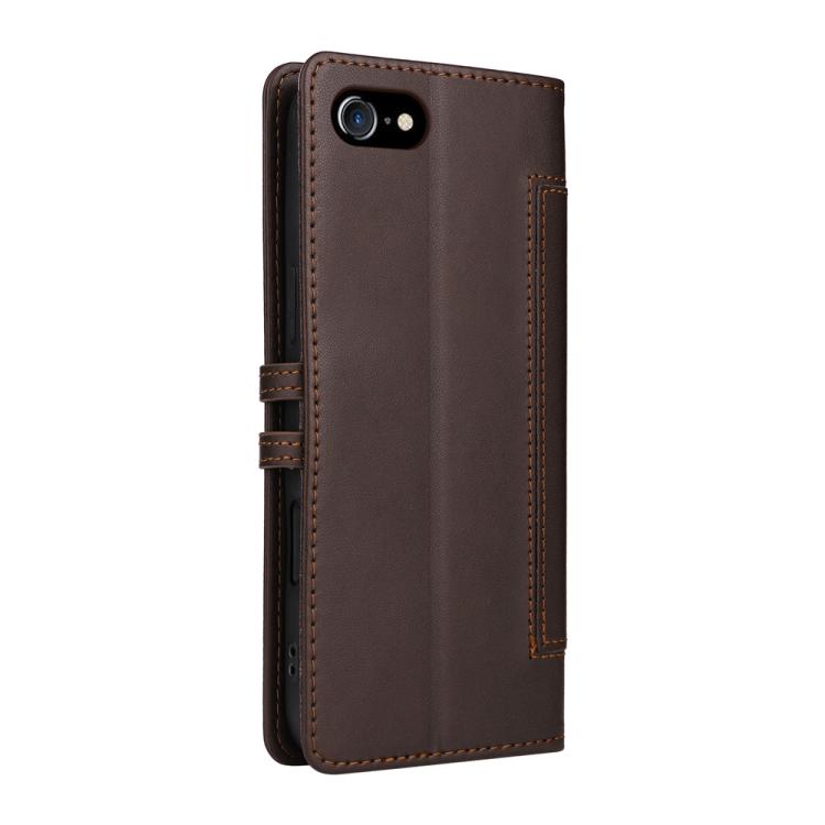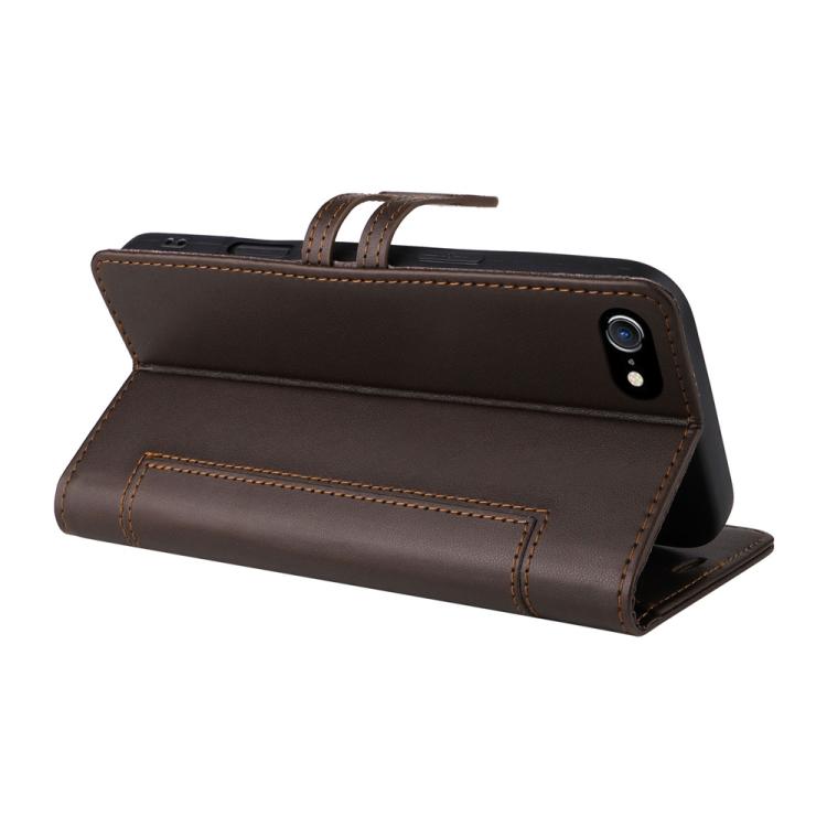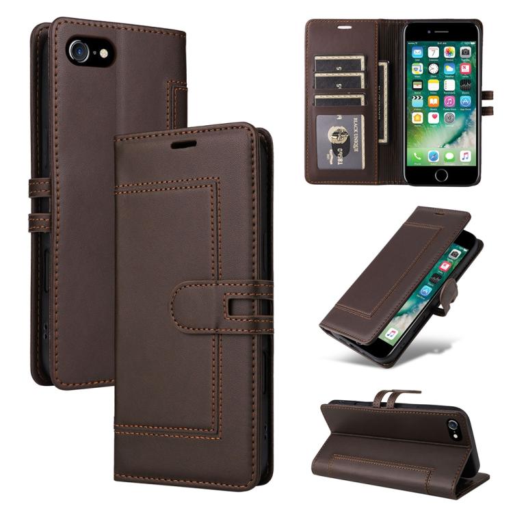 For iPhone SE 2022 / 2020 / 8 / 7 Stitched Magnetic Buckle Leather Phone Case(Coffee)