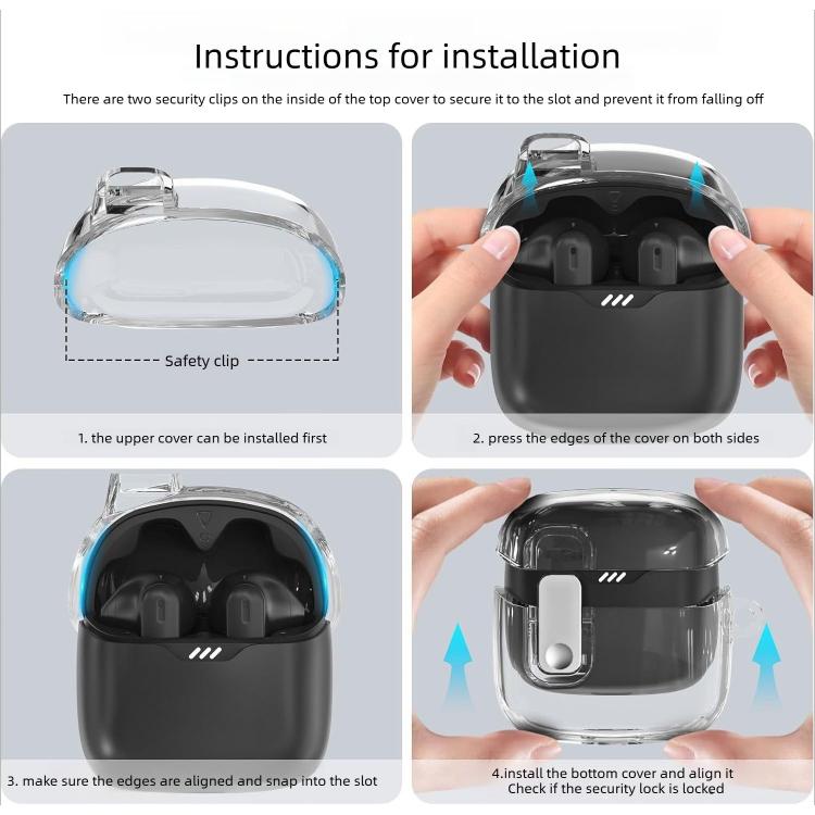 For JBL Tune Flex 2 Transparent Snap Lock TPU Earphone Cover with Metal Buckle(Translucent Black)