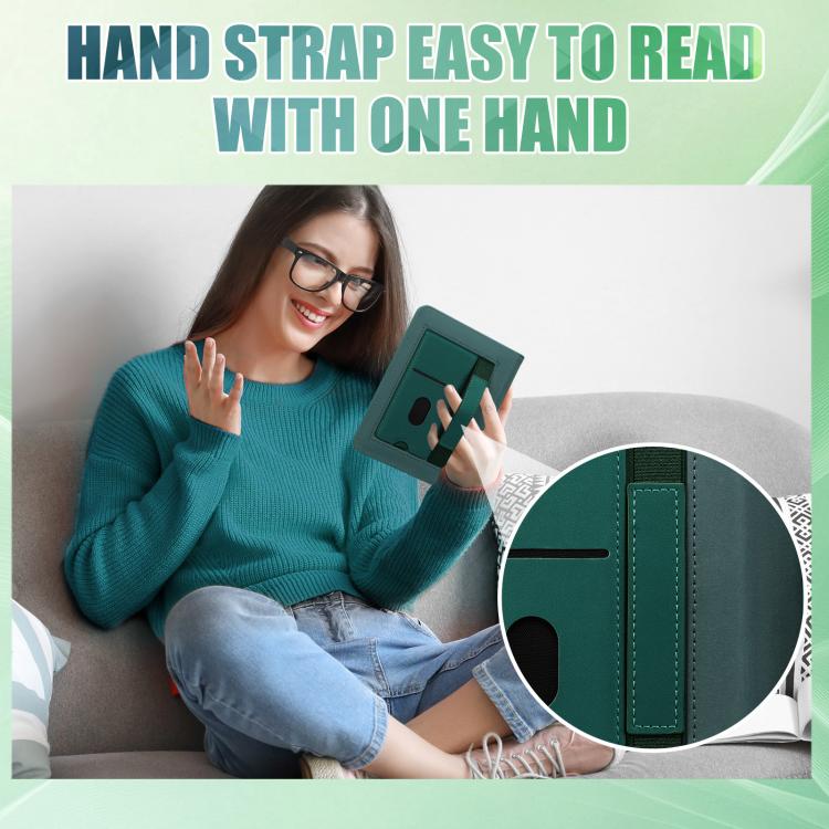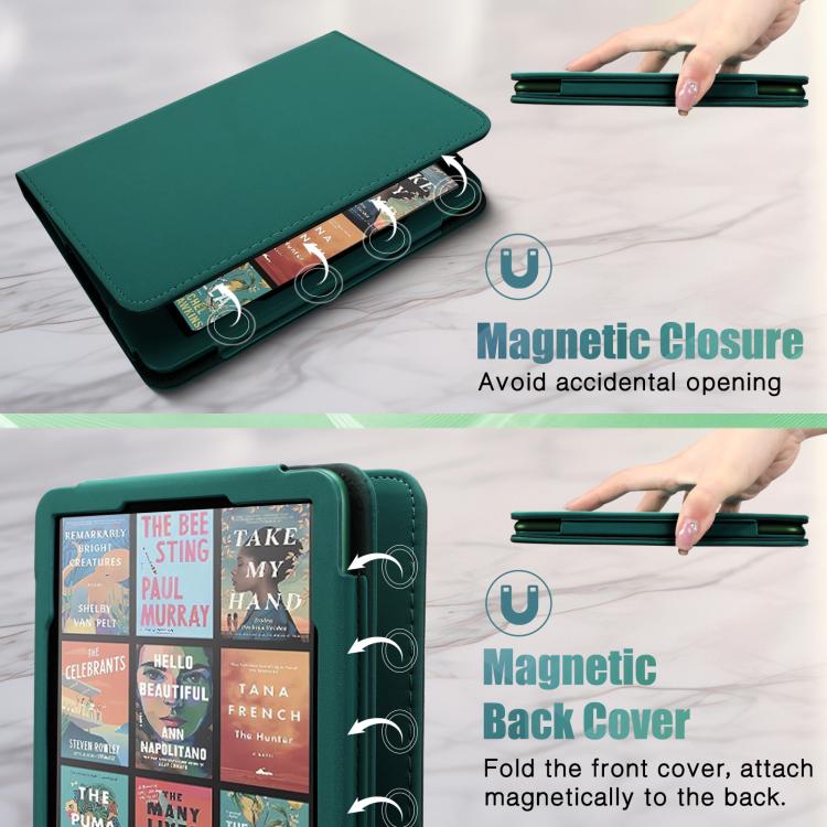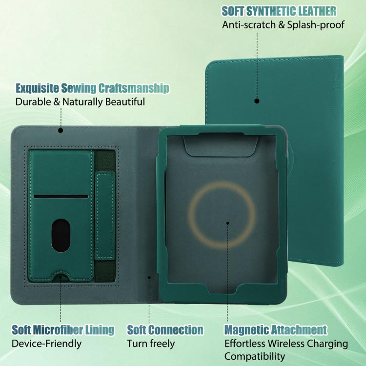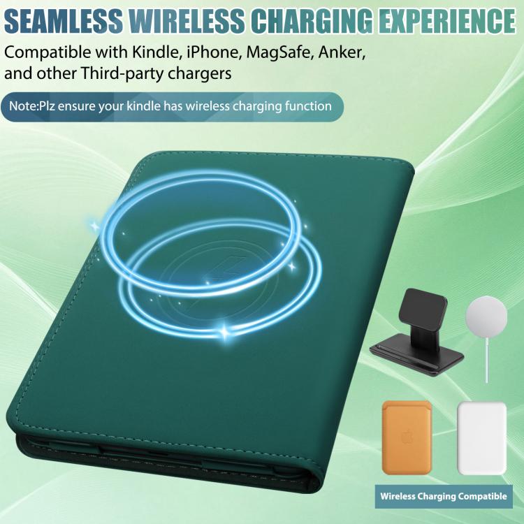 For Kindle Paperwhite 12th Gen 2024/ 11th Gen 2021 Leather Case Supports Magnetic Wireless Charging, Foldable Stand, Auto Sleep/Wake(Ink Green)