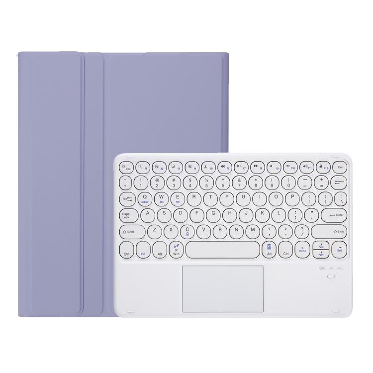 For Lenovo Tab 10.1 / ZhaoYang K10C 10.1 YAM29-A Ultra-thin Detachable Round Keycap Bluetooth Keyboard Leather Tablet Case with Touchpad(Lavender White)