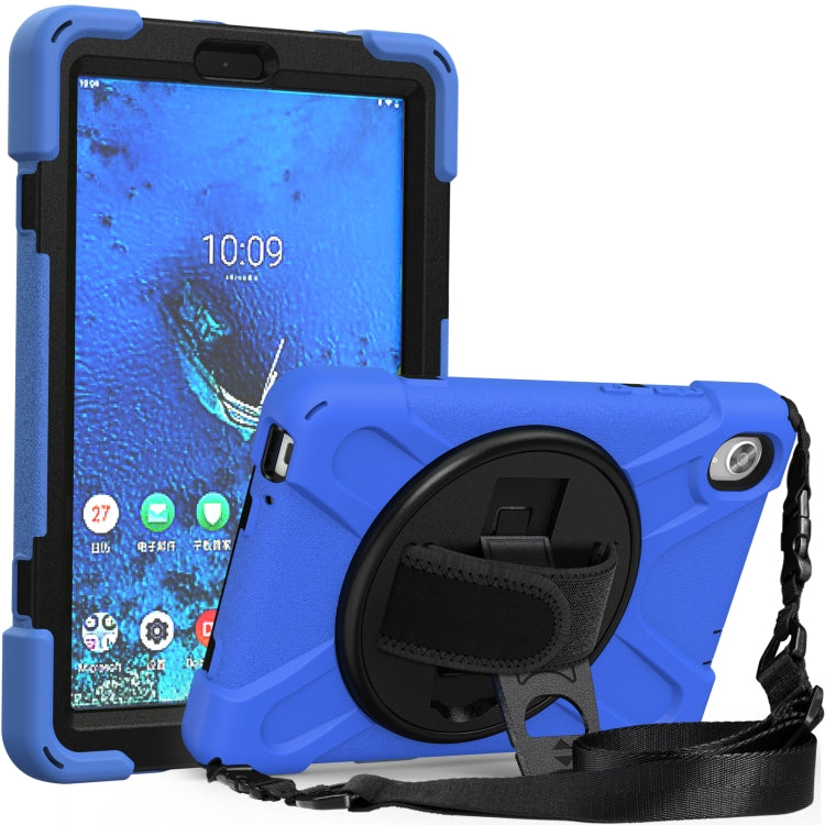 For Lenovo Tab M8 (2020) TB-8705F 8.0 inch Shockproof Colorful Silicone + PC Protective Case with Holder & Shoulder Strap & Hand Strap(Blue)