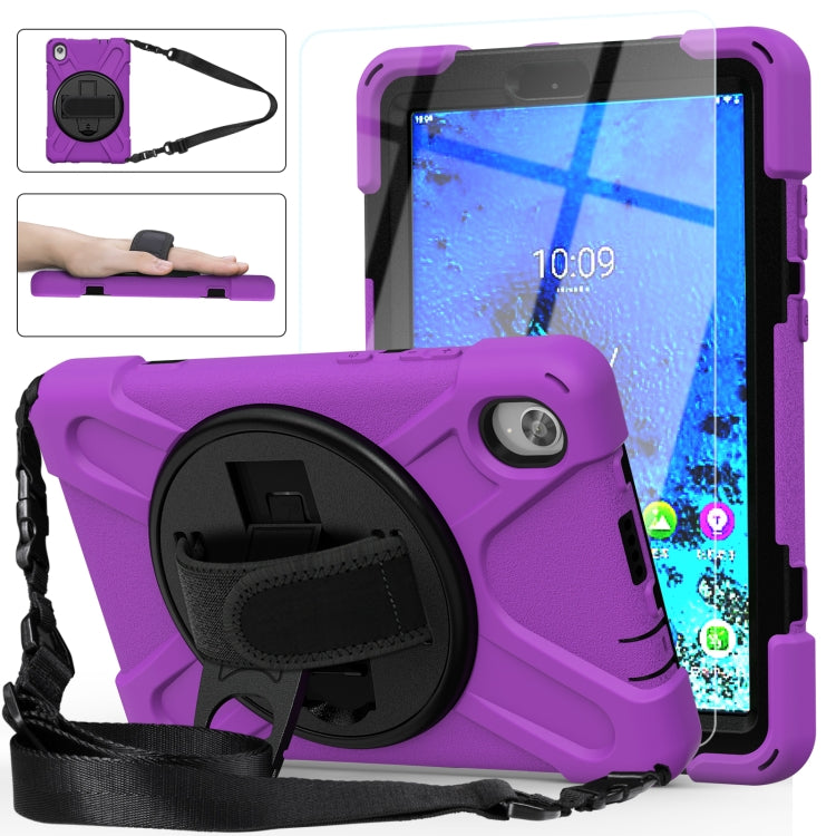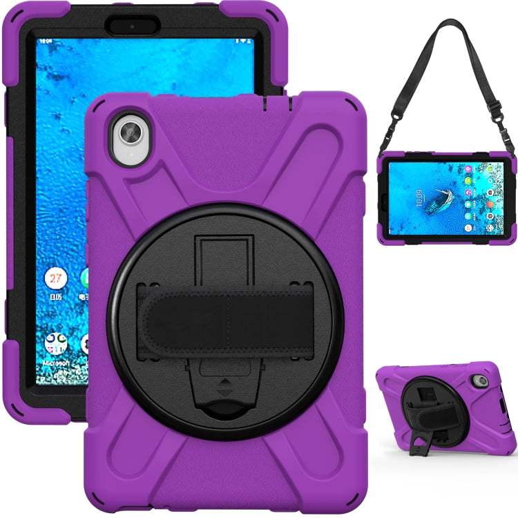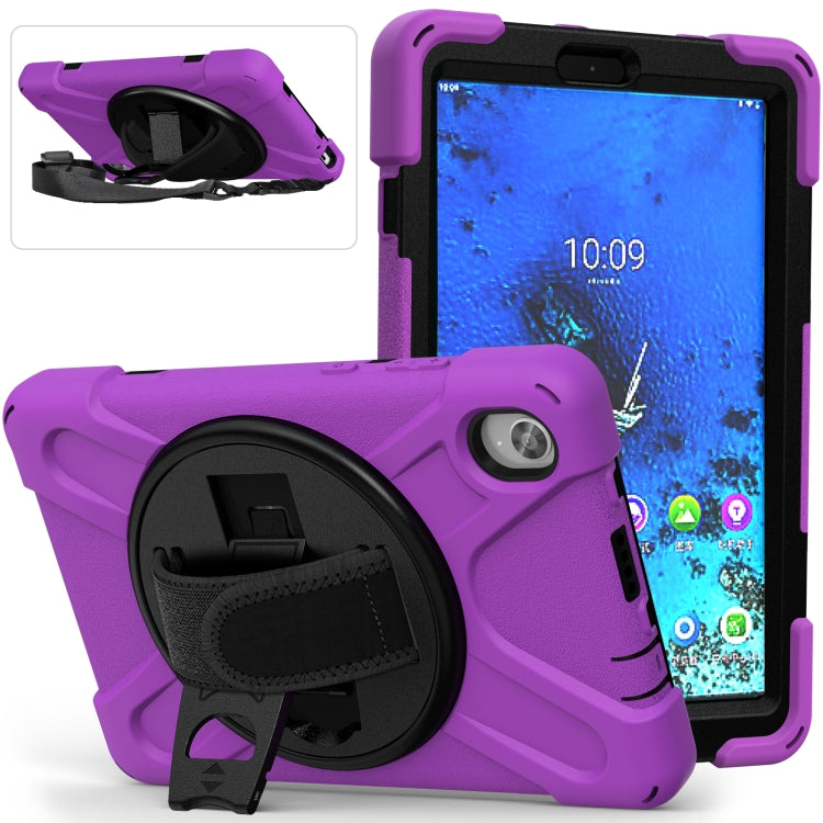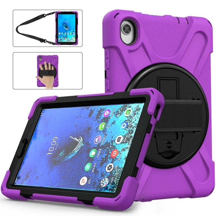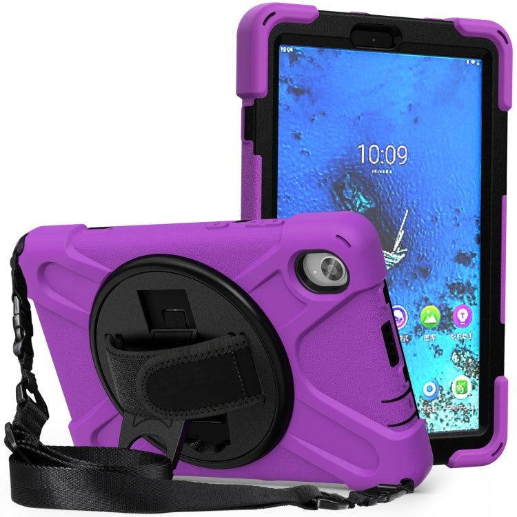 For Lenovo Tab M8 (2020) TB-8705F 8.0 inch Shockproof Colorful Silicone + PC Protective Case with Holder & Shoulder Strap & Hand Strap(Purple)