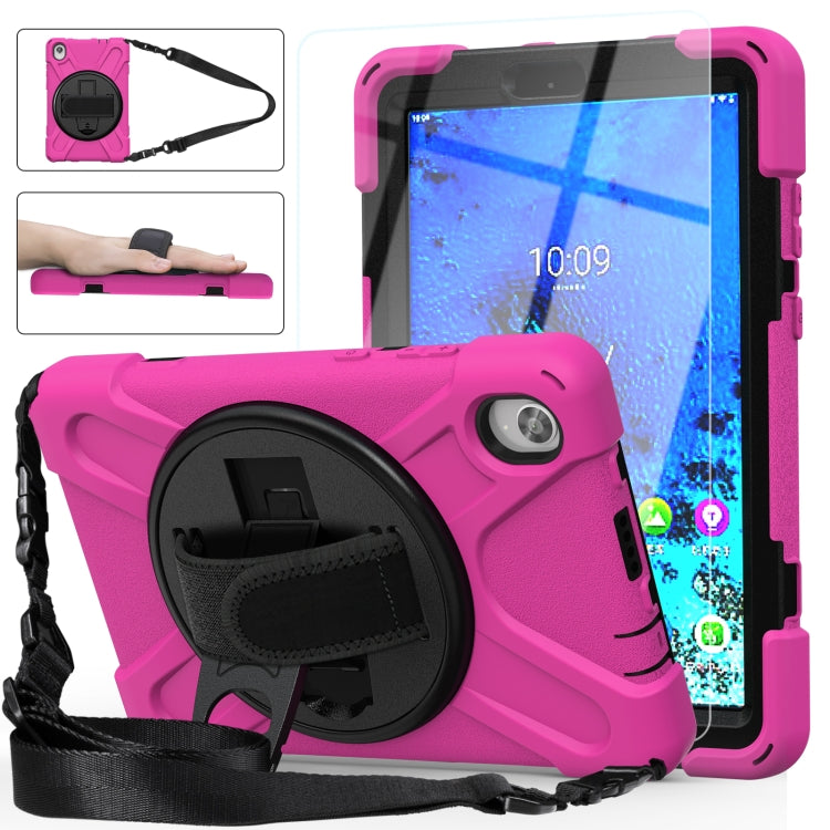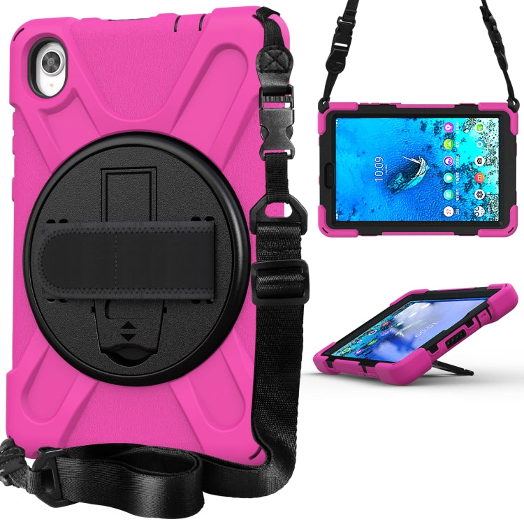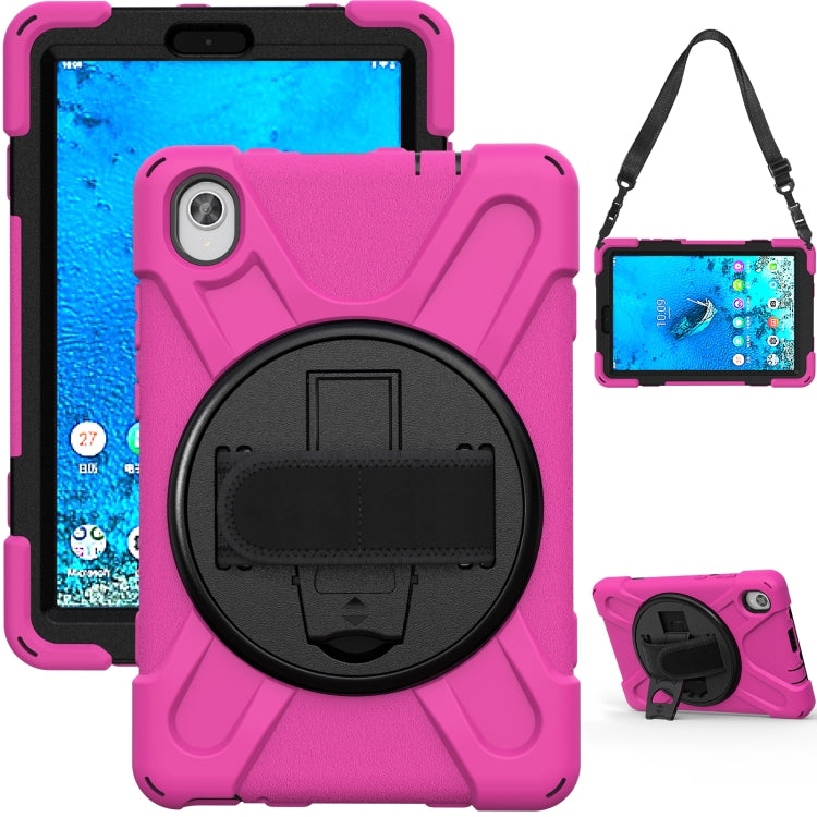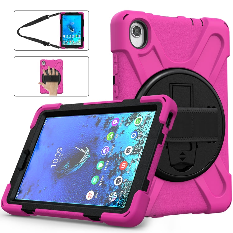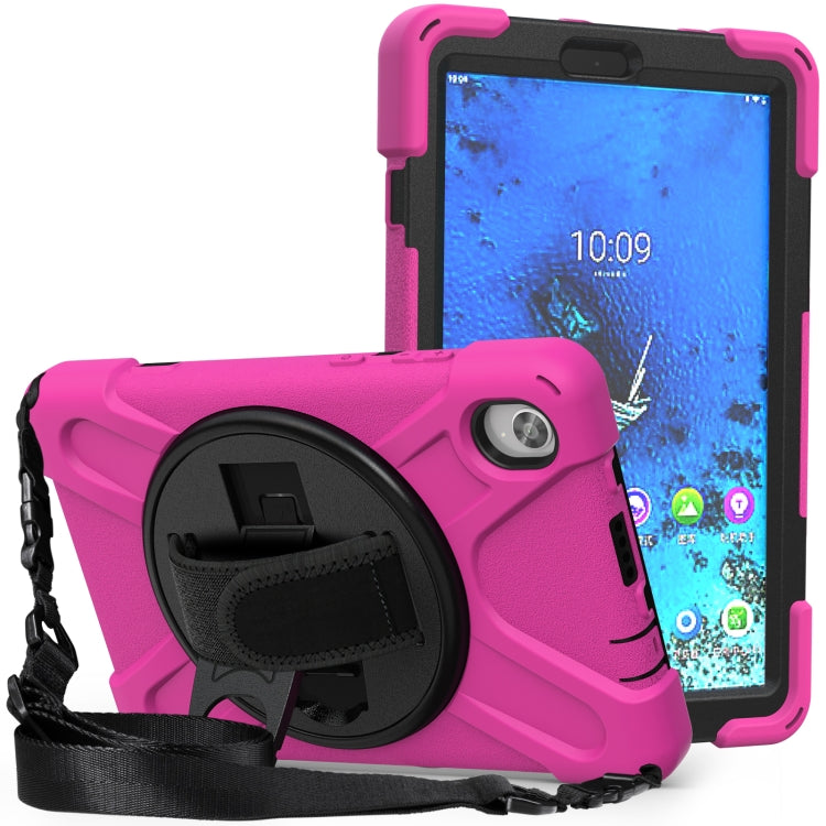 For Lenovo Tab M8 (2020) TB-8705F 8.0 inch Shockproof Colorful Silicone + PC Protective Case with Holder & Shoulder Strap & Hand Strap(Rose Red)