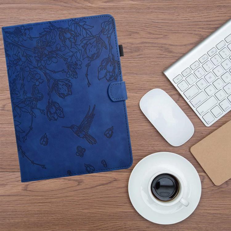 For Lenovo Xiaoxin Pad 11 2025 Flowers and Bird Embossed Smart Leather Tablet Case(Dark Blue)