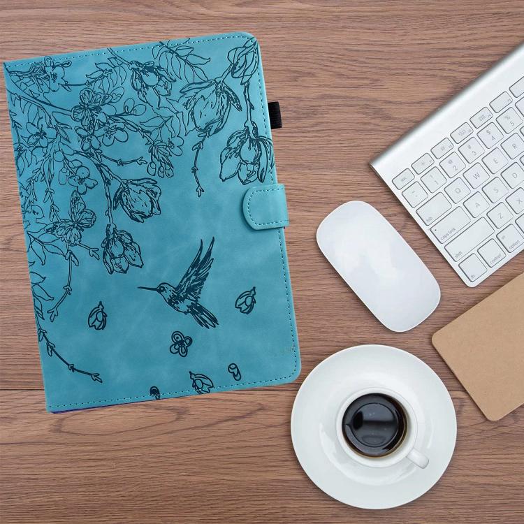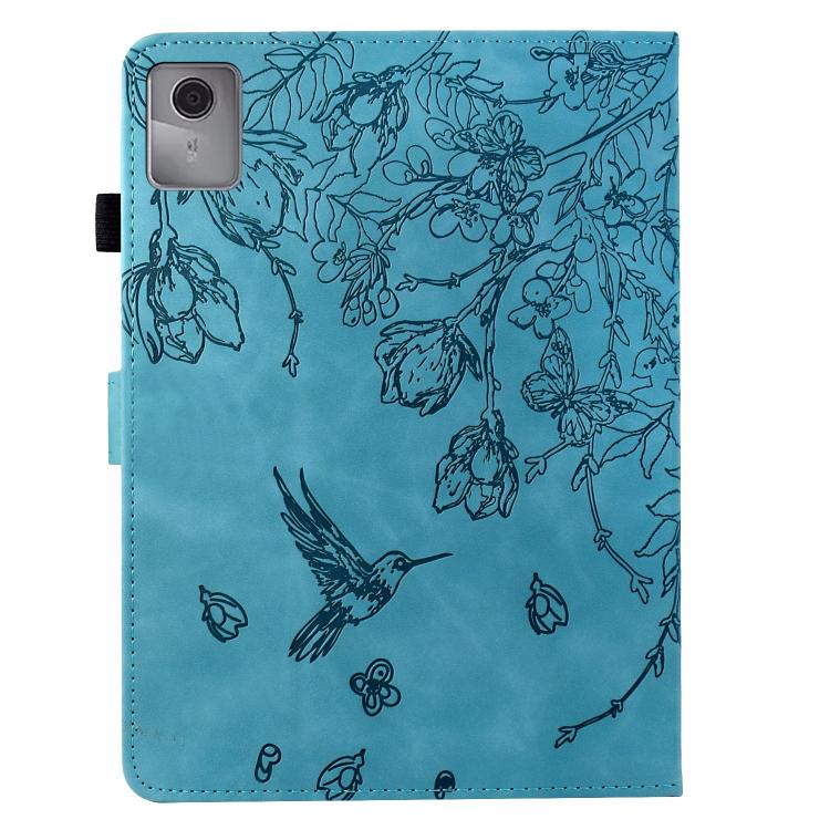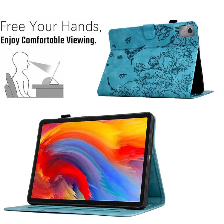 For Lenovo Xiaoxin Pad 11 2025 Flowers and Bird Embossed Smart Leather Tablet Case(Light Blue)