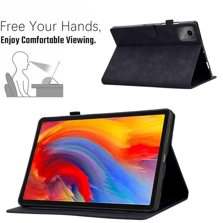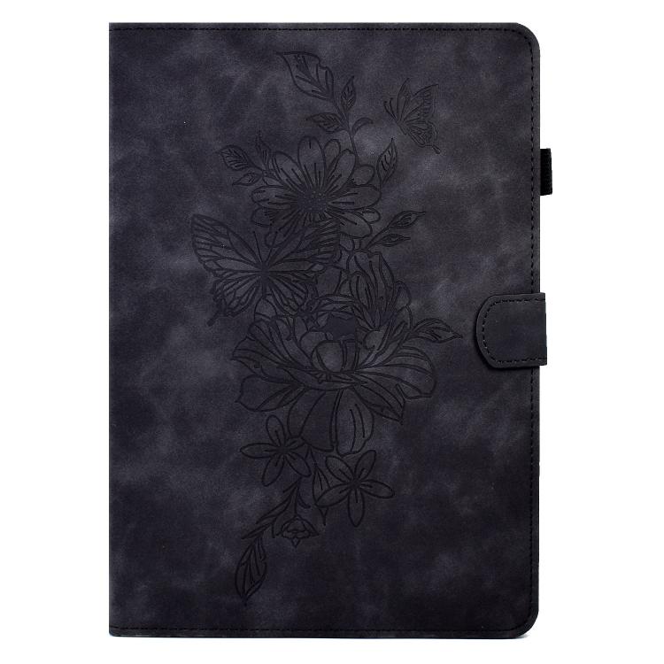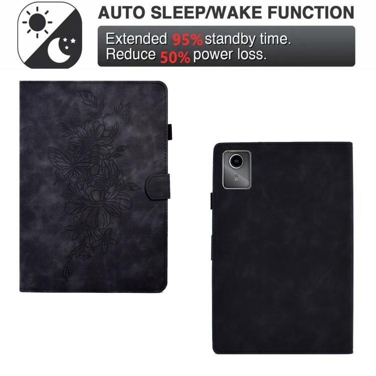 For Lenovo Xiaoxin Pad 11 2025 Peony Butterfly Embossed Leather Smart Tablet Case(Black)