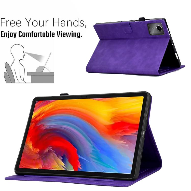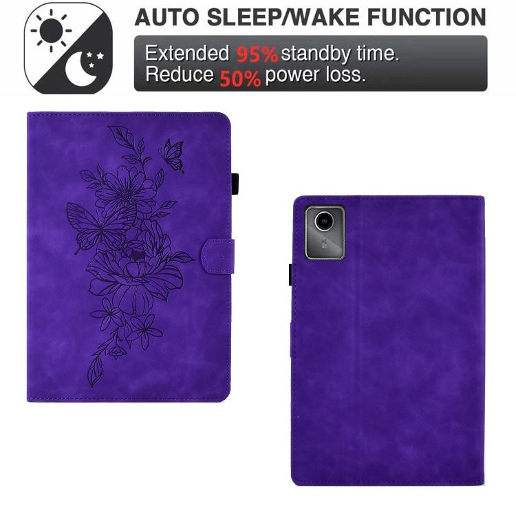 For Lenovo Xiaoxin Pad 11 2025 Peony Butterfly Embossed Leather Smart Tablet Case(Purple)