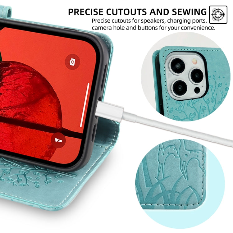 For LG K42 Tree & Deer Embossed Leather Phone Case(Green)