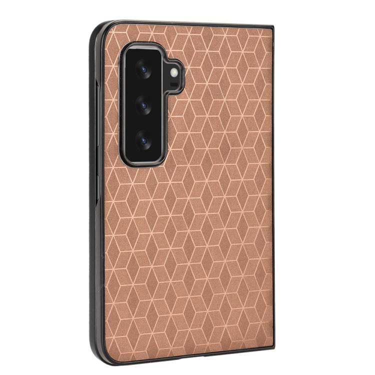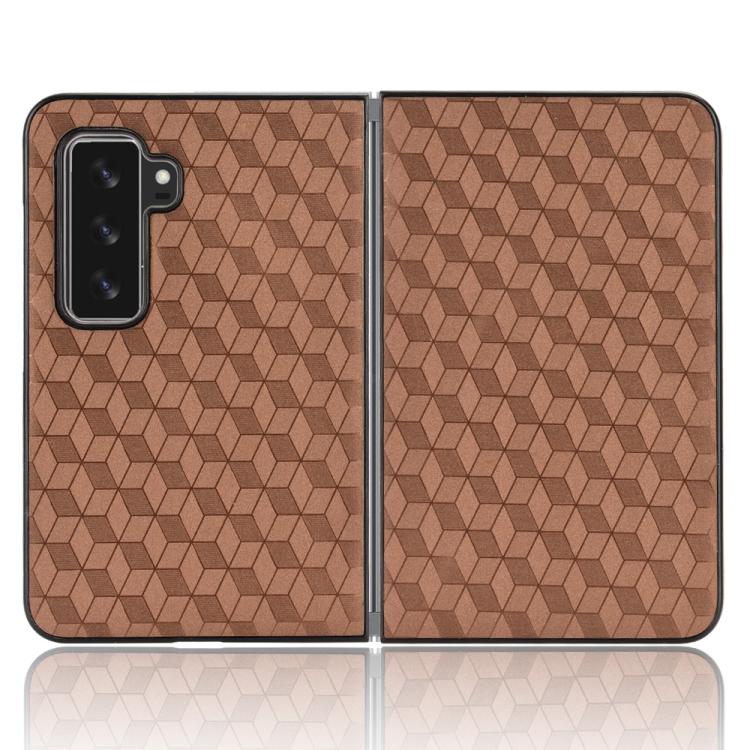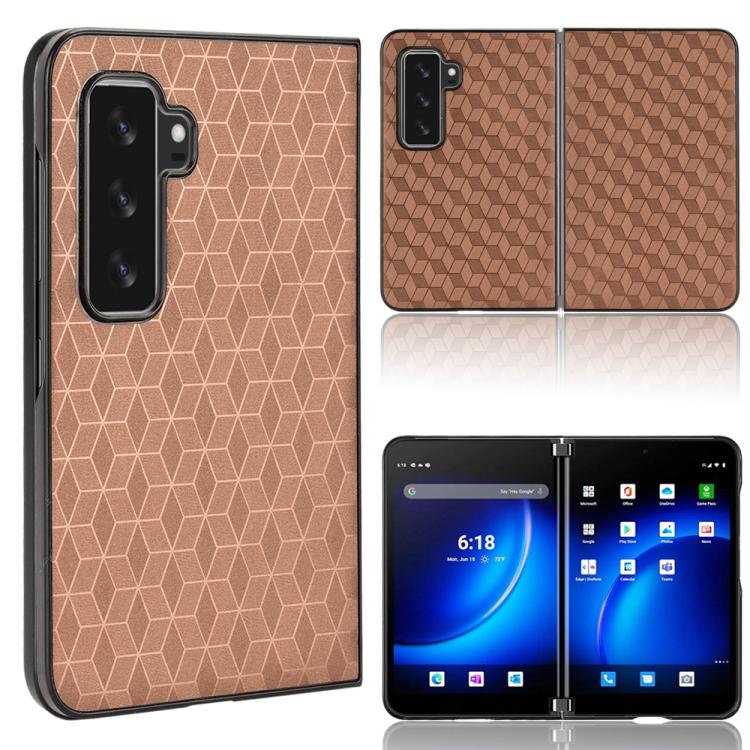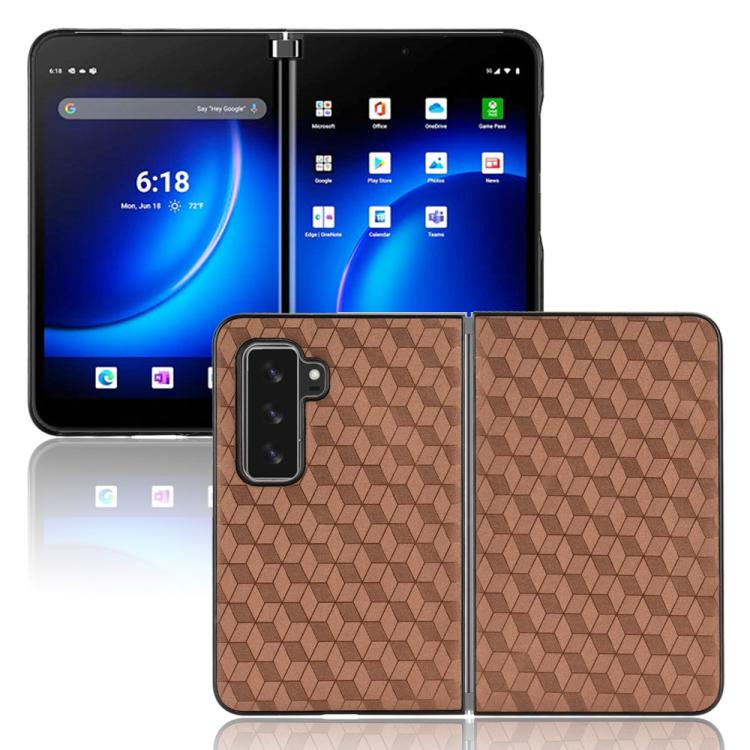 For Microsoft Surface Duo 2 Cubic Grid Texture Leather Back Cover Phone Case(Brown)