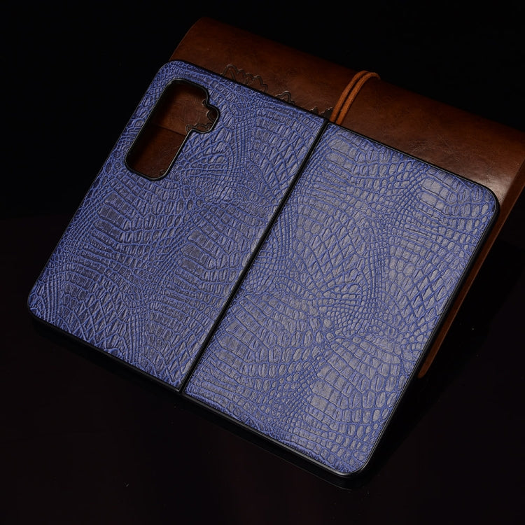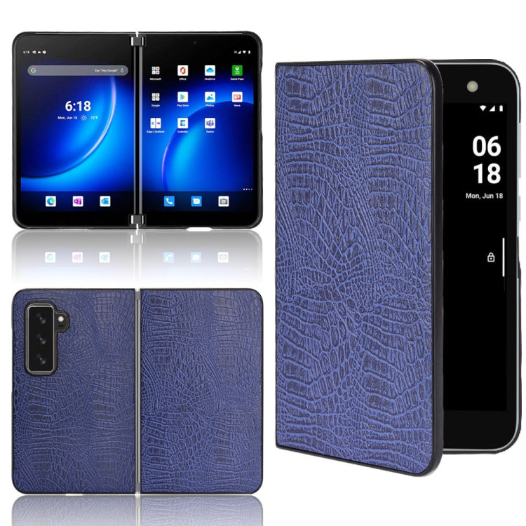 For Microsoft Surface Duo 2 Shockproof Crocodile Texture PC + PU Case(Blue)
