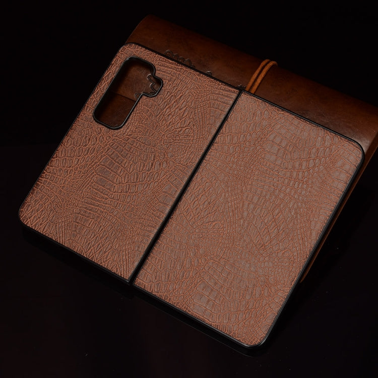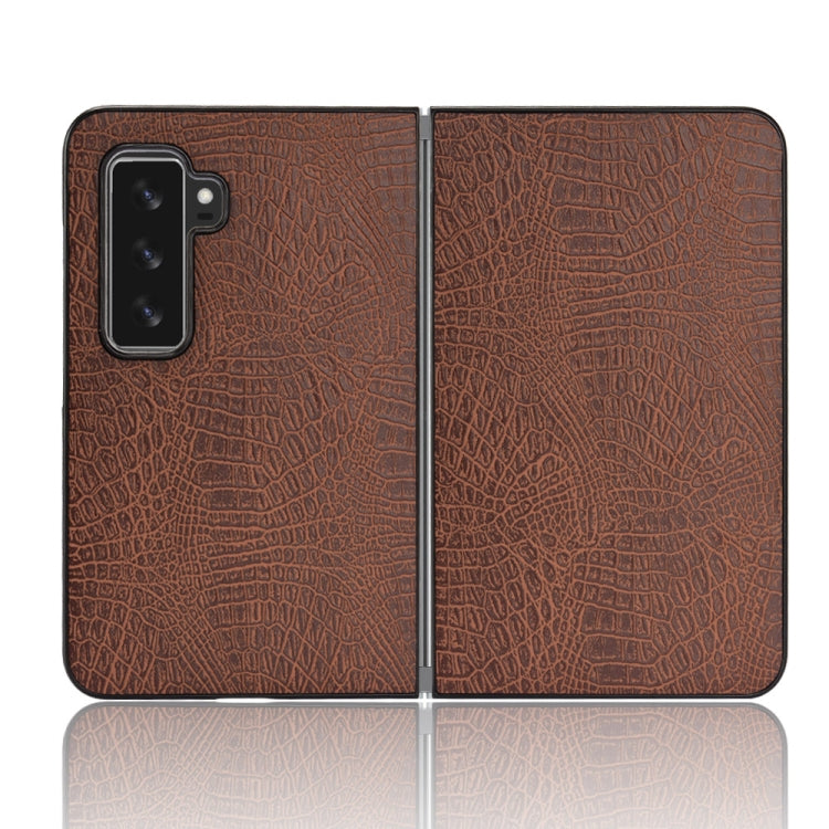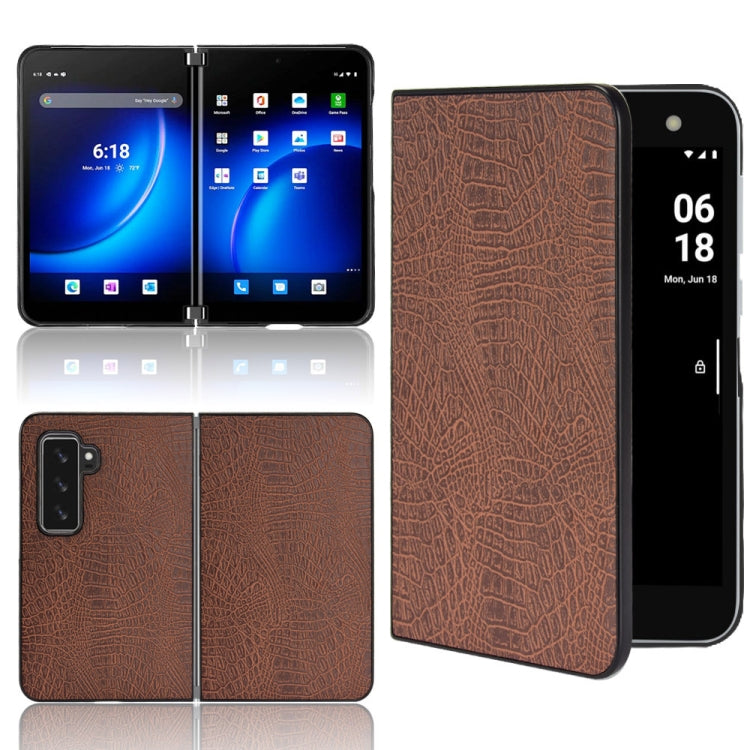 For Microsoft Surface Duo 2 Shockproof Crocodile Texture PC + PU Case(Brown)