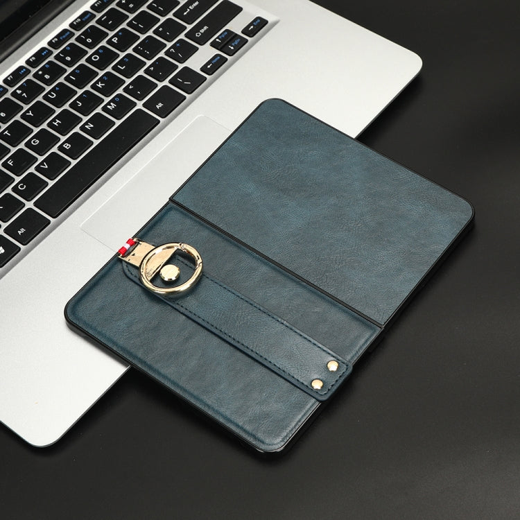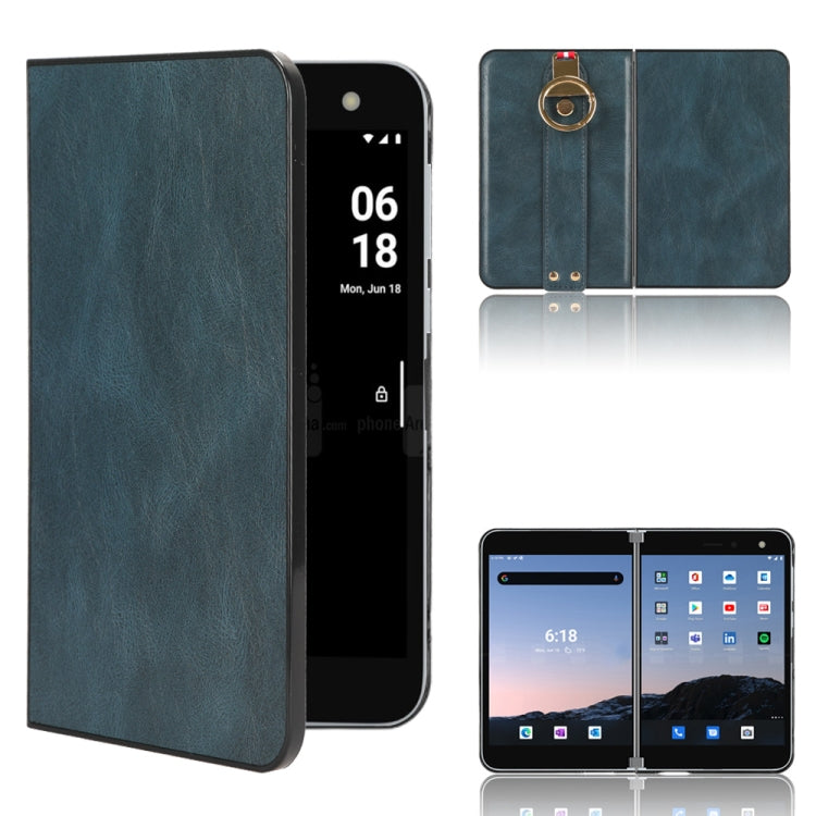 For Microsoft Surface Duo Wristband Leather Back Phone Case(Blue)