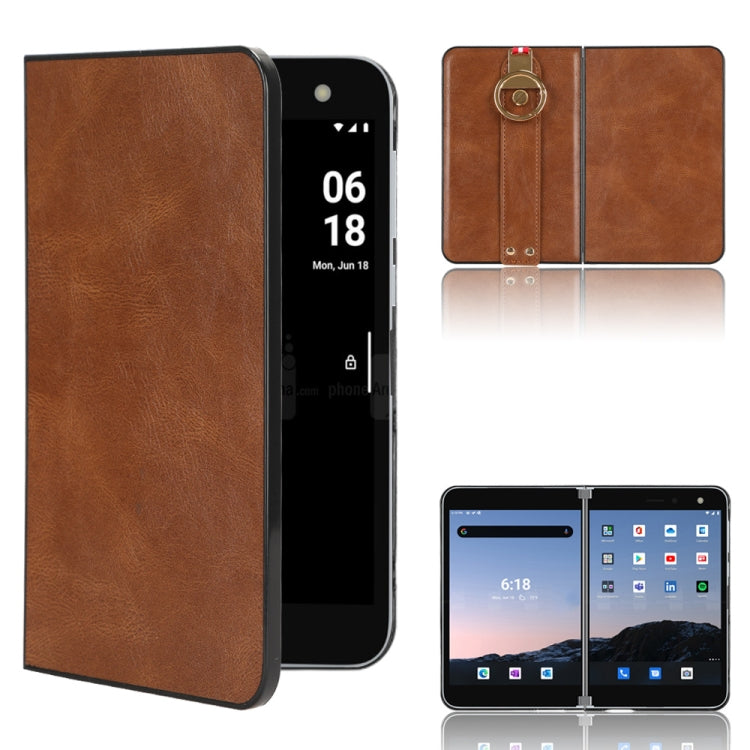 For Microsoft Surface Duo Wristband Leather Back Phone Case(Brown)