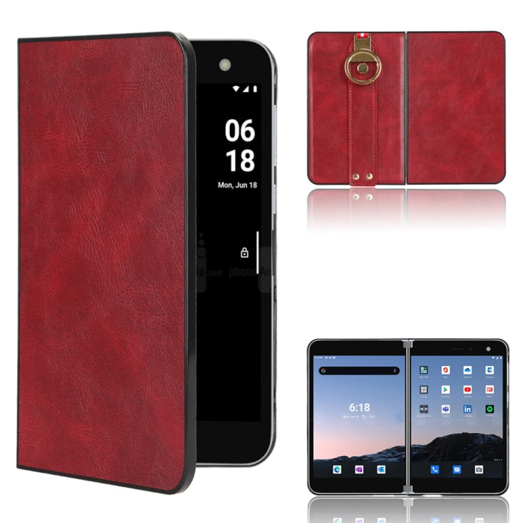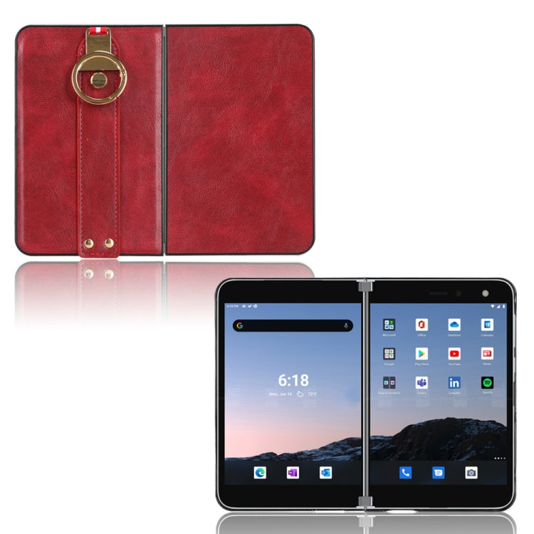 For Microsoft Surface Duo Wristband Leather Back Phone Case(Red)