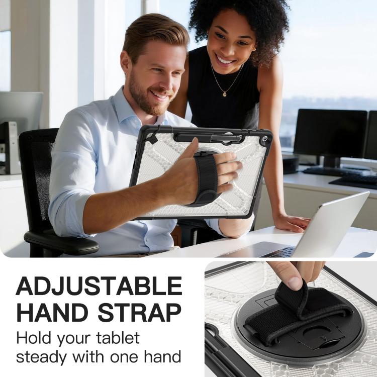 6. Hand Grip: Adjustable hand strap more easily grip, relieving pressure on your hands when using your tablet.