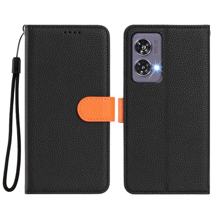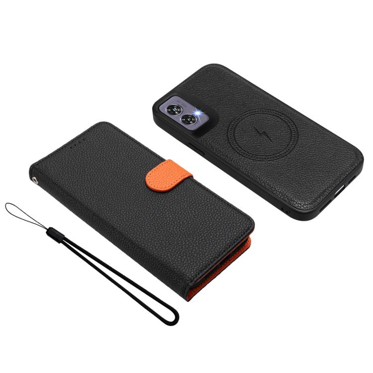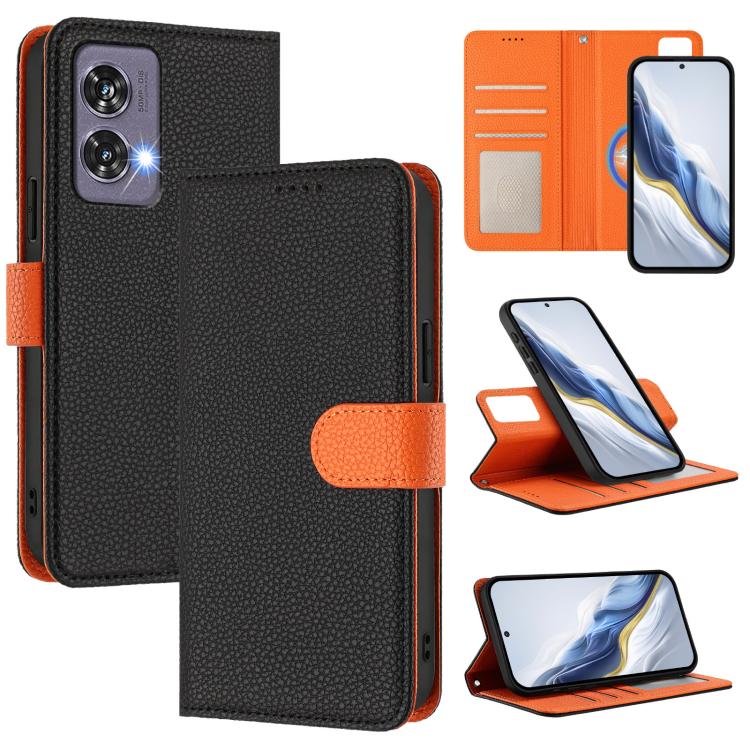 For Motorola Edge 50 Fusion Detachable Litchi Texture Magnetic Vegan Leather Phone Case(Black+Orange)