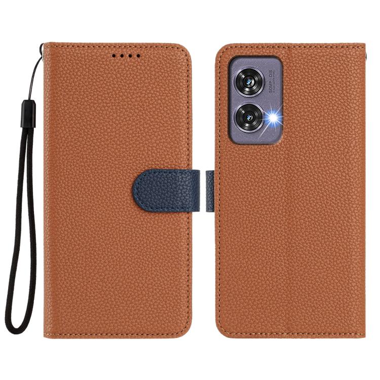 For Motorola Edge 50 Fusion Detachable Litchi Texture Magnetic Vegan Leather Phone Case(Brown+Dark Blue)