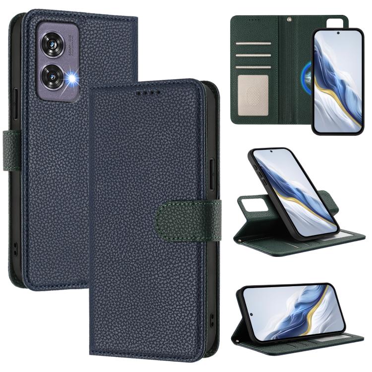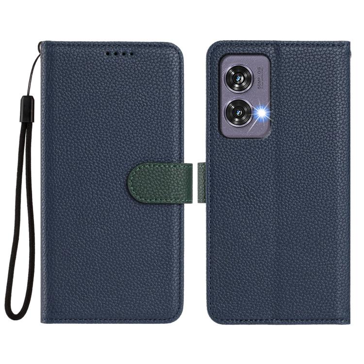 For Motorola Edge 50 Fusion Detachable Litchi Texture Magnetic Vegan Leather Phone Case(Dark Blue+Dark Green)