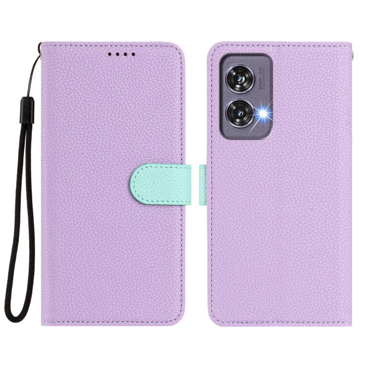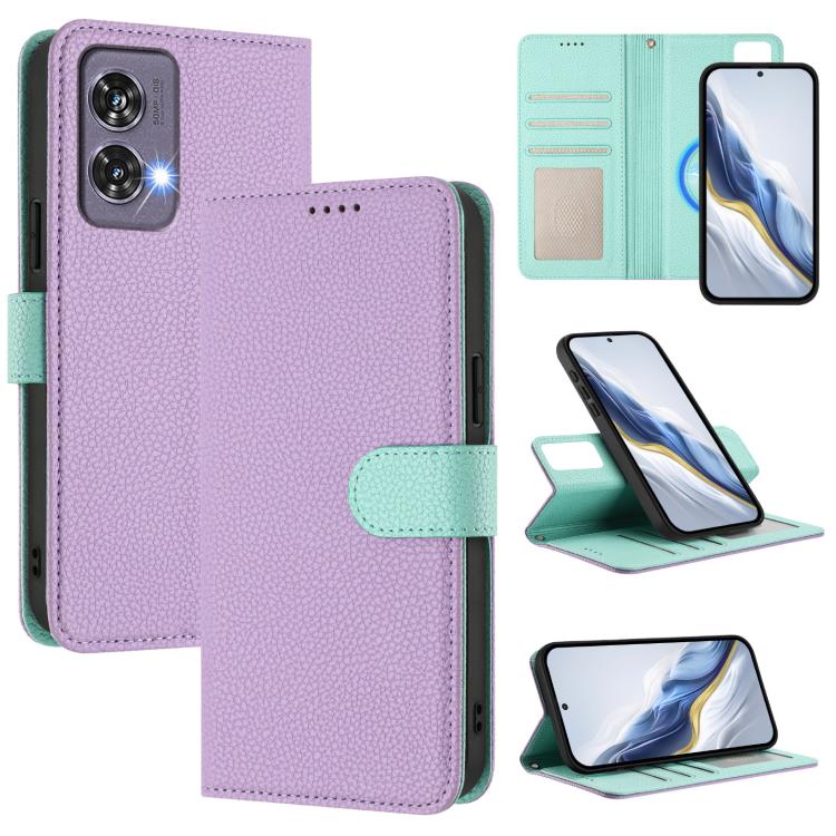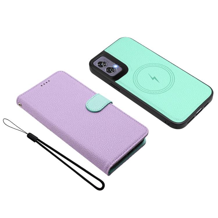 For Motorola Edge 50 Fusion Detachable Litchi Texture Magnetic Vegan Leather Phone Case(Purple+Mint Green)