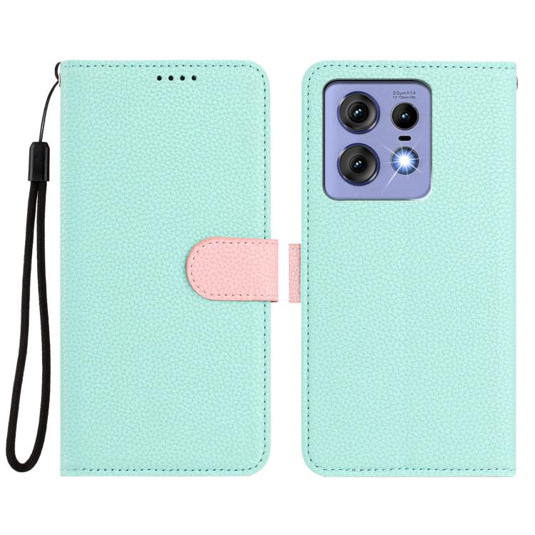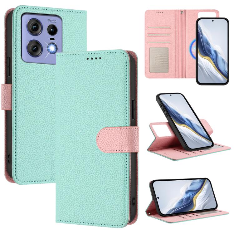 For Motorola Edge 50 Pro Detachable Litchi Texture Magnetic Vegan Leather Phone Case(Mint Green+Pink)