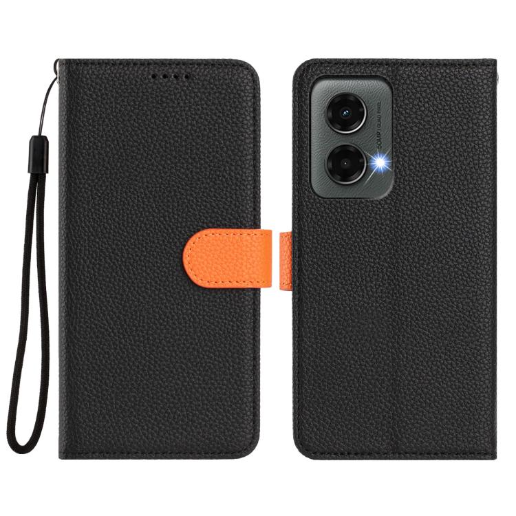 For Motorola Moto G 5G / G Play 5G 2024 Detachable Litchi Texture Magnetic Vegan Leather Phone Case(Black+Orange)