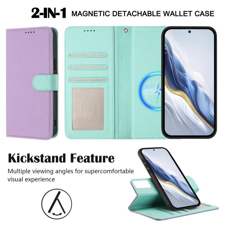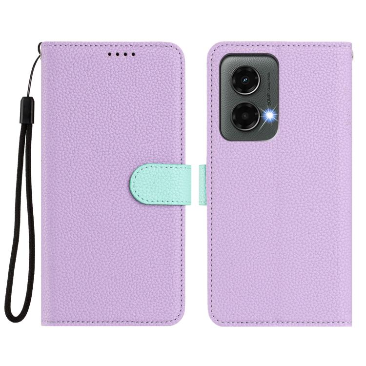 For Motorola Moto G 5G / G Play 5G 2024 Detachable Litchi Texture Magnetic Vegan Leather Phone Case(Purple+Mint Green)