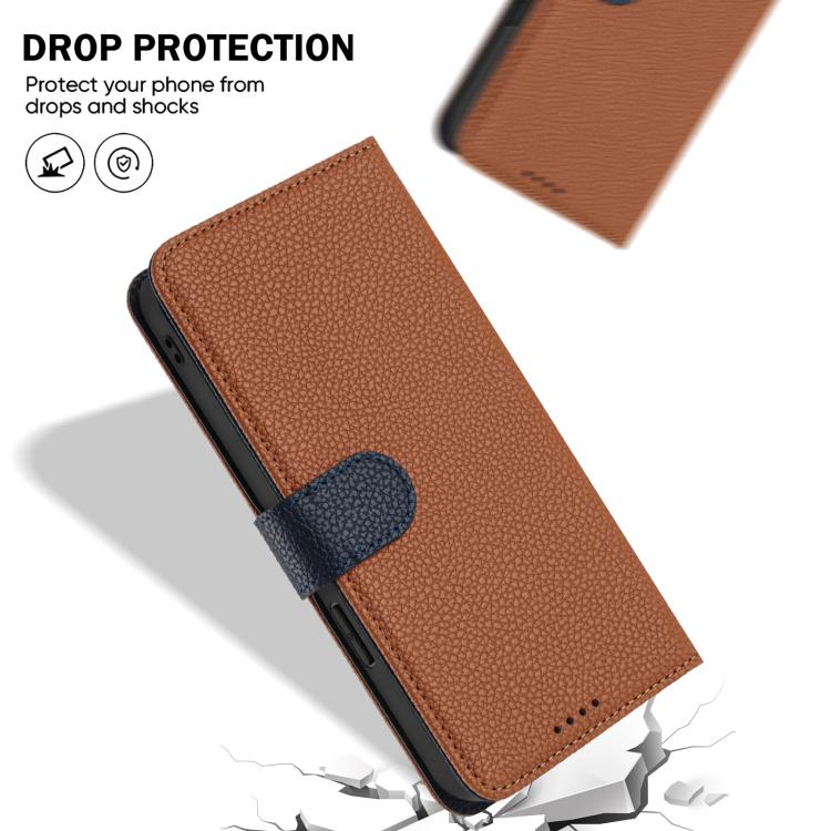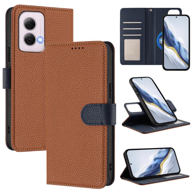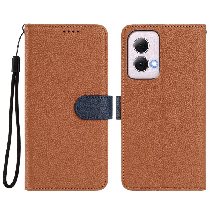 For Motorola Moto G Power 5G 2024 Detachable Litchi Texture Magnetic Vegan Leather Phone Case(Brown+Dark Blue)