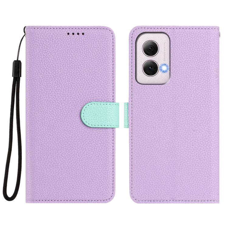 For Motorola Moto G Power 5G 2024 Detachable Litchi Texture Magnetic Vegan Leather Phone Case(Purple+Mint Green)