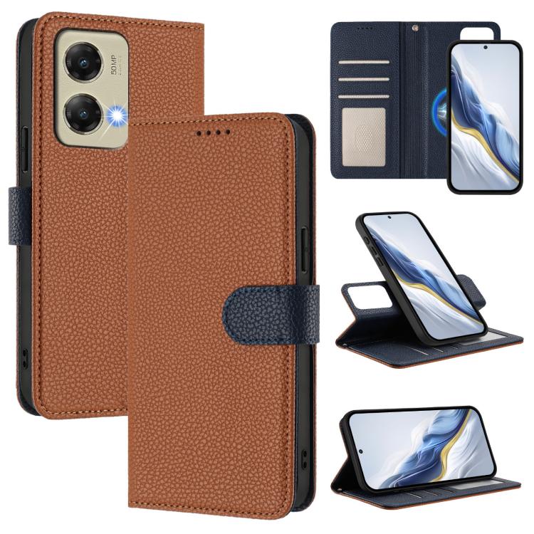 For Motorola Moto G Stylus 5G 2024 Detachable Litchi Texture Magnetic Vegan Leather Phone Case(Brown+Dark Blue)