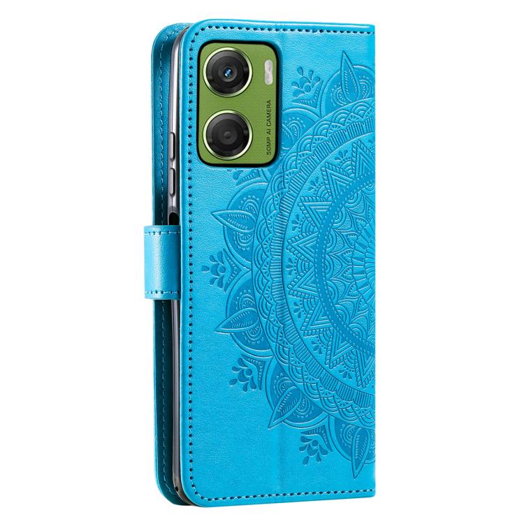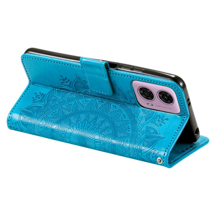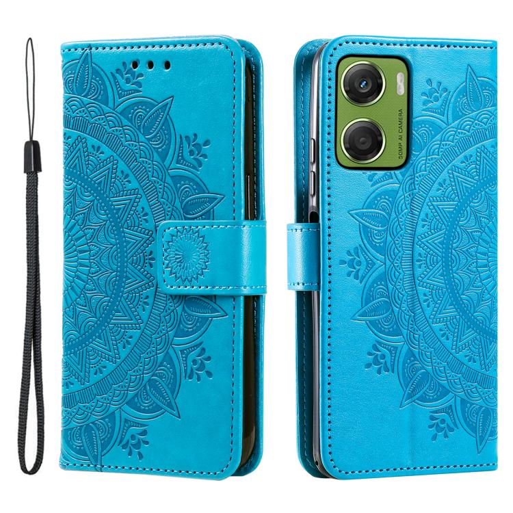 For Motorola Moto G06 4G Totem Flower Embossed Leather Phone Case with Lanyard(Blue)