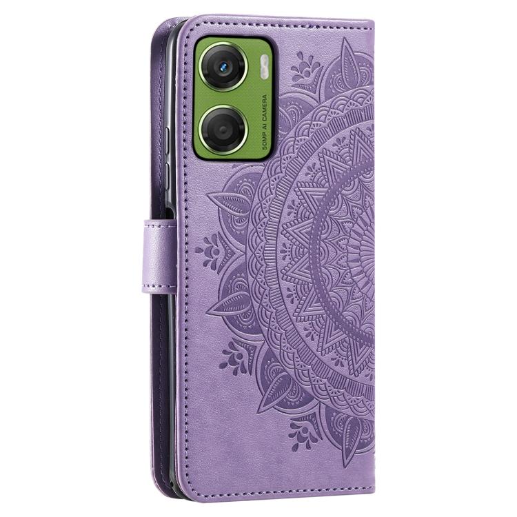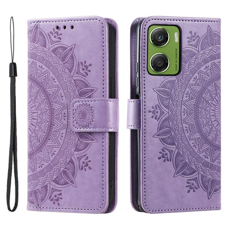 For Motorola Moto G06 4G Totem Flower Embossed Leather Phone Case with Lanyard(Purple)