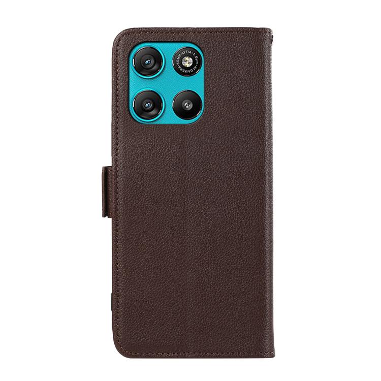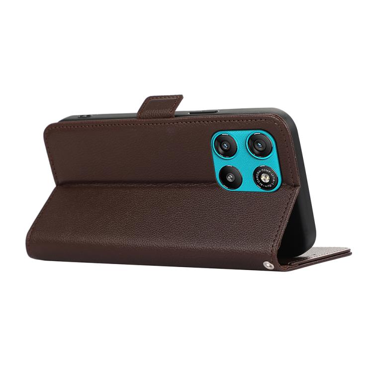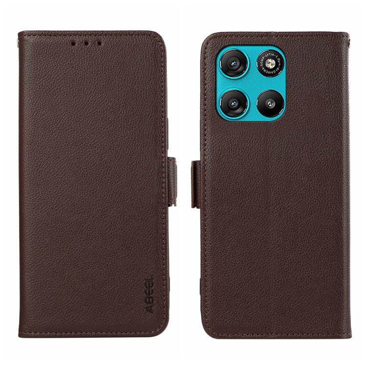 For Motorola Moto G57 Power 5G ABEEL Side-Magnetic Litchi Pattern Leather RFID Phone Case(Brown)