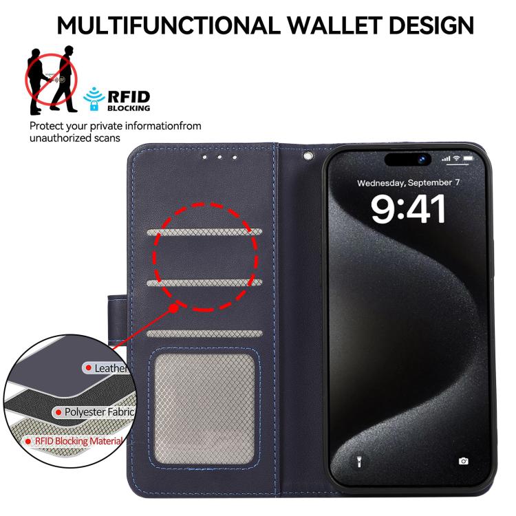 For Motorola Moto G67 Power/G57 Power ABEEL Delicate Texture Splicing RFID Leather Phone Case(Blue)