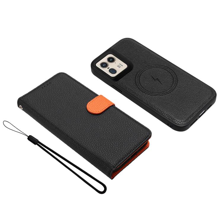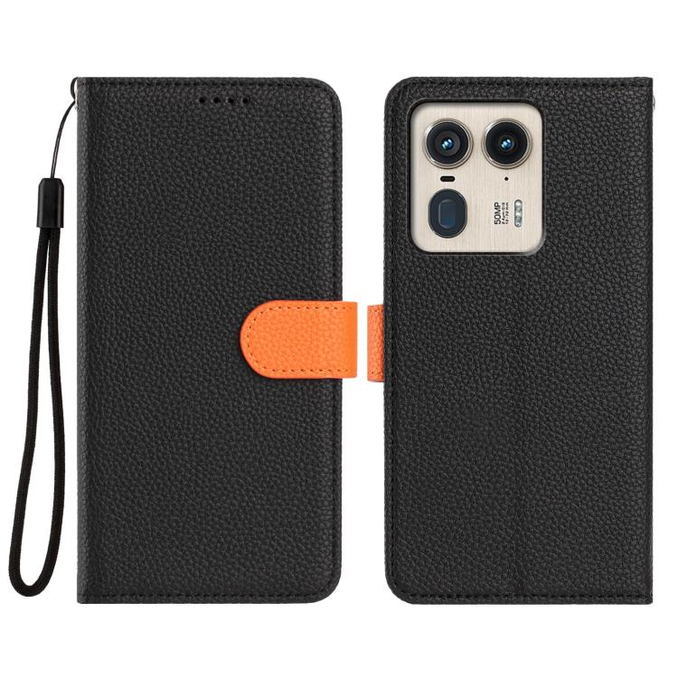 For Motorola Moto X50 Ultra / Edge 50 Ultra Detachable Litchi Texture Magnetic Vegan Leather Phone Case(Black+Orange)