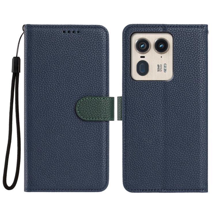 For Motorola Moto X50 Ultra / Edge 50 Ultra Detachable Litchi Texture Magnetic Vegan Leather Phone Case(Dark Blue+Dark Green)
