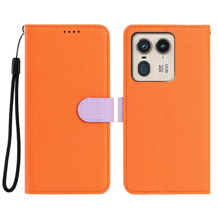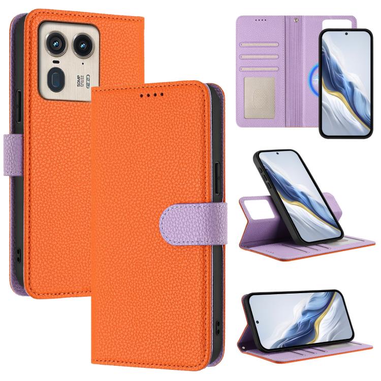 For Motorola Moto X50 Ultra / Edge 50 Ultra Detachable Litchi Texture Magnetic Vegan Leather Phone Case(Orange+Purple)