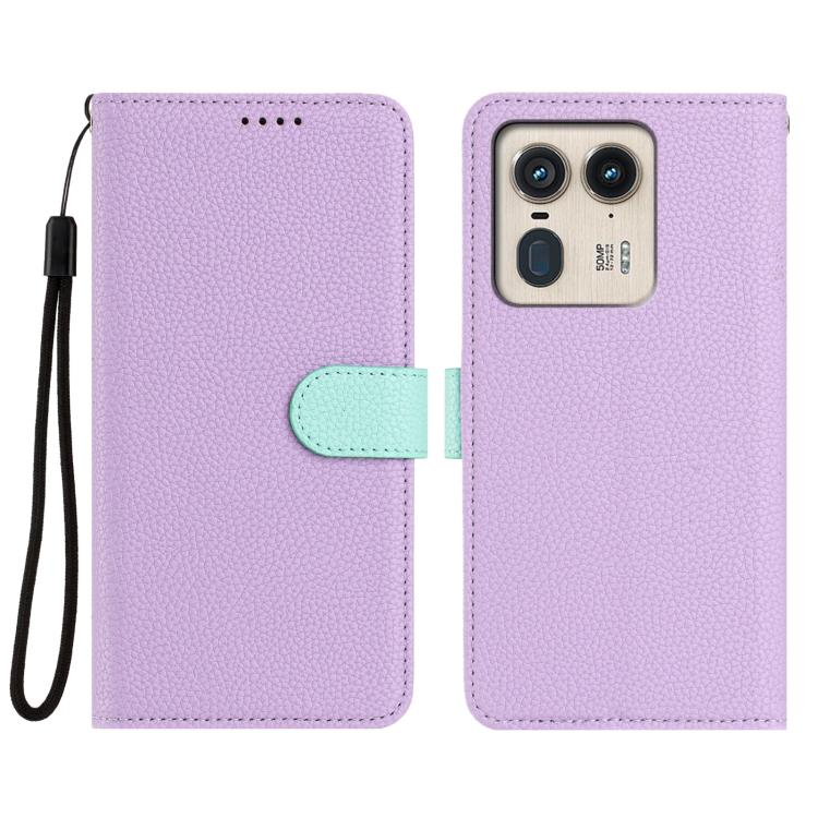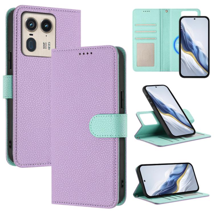 For Motorola Moto X50 Ultra / Edge 50 Ultra Detachable Litchi Texture Magnetic Vegan Leather Phone Case(Purple+Mint Green)