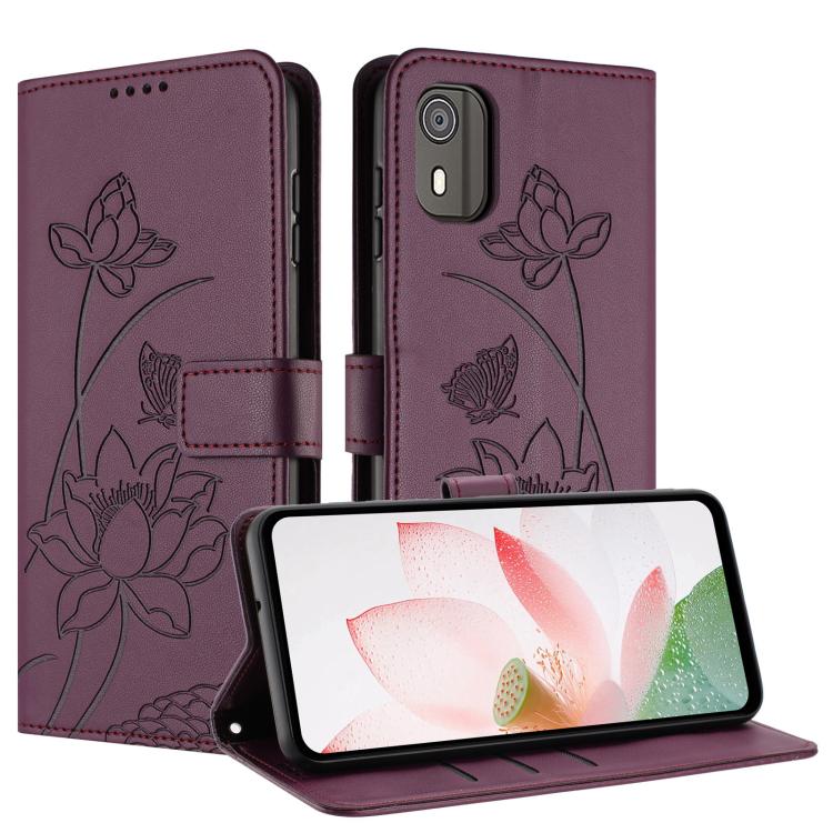 For Nokia C02 Lotus Embossed Leather Phone Case with Lanyard(Wine Red)
