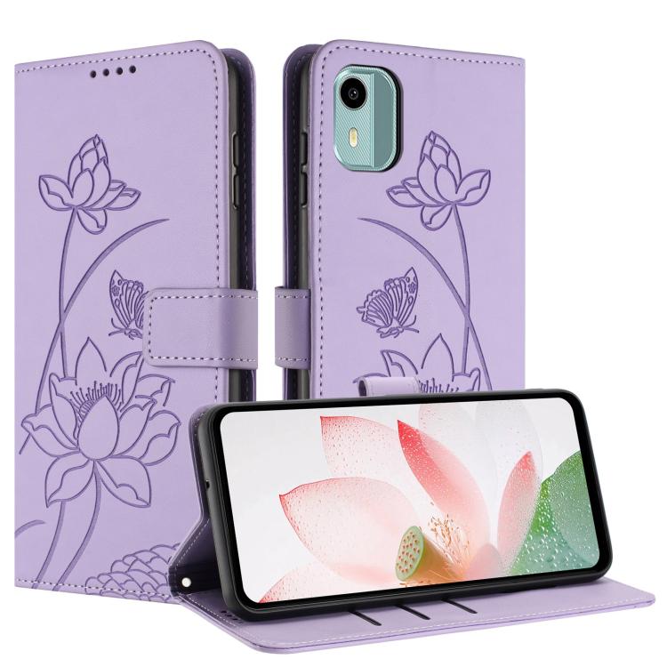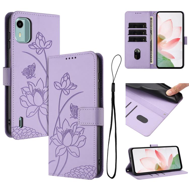 For Nokia C12 Lotus Embossed Leather Phone Case with Lanyard(Purple)