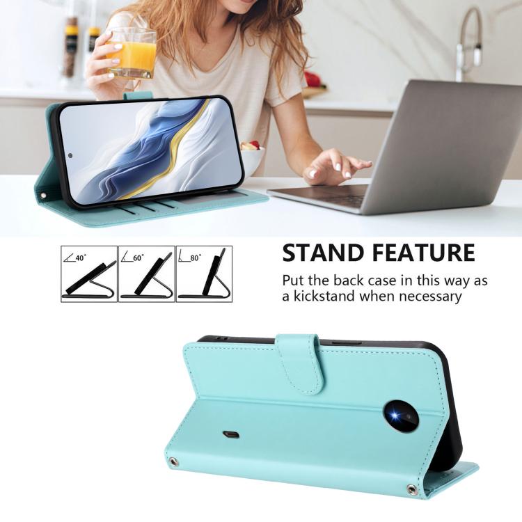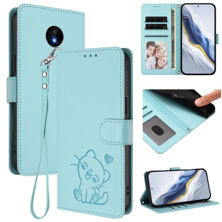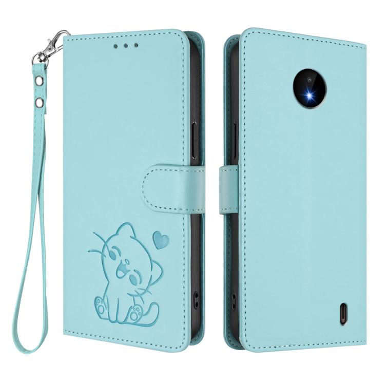For Nokia C20 / C10 Embossed Heart Cat Leather Phone Case with Hand Strap(Mint Green)