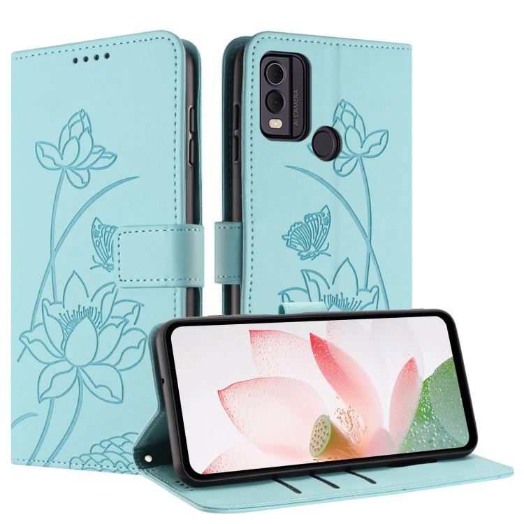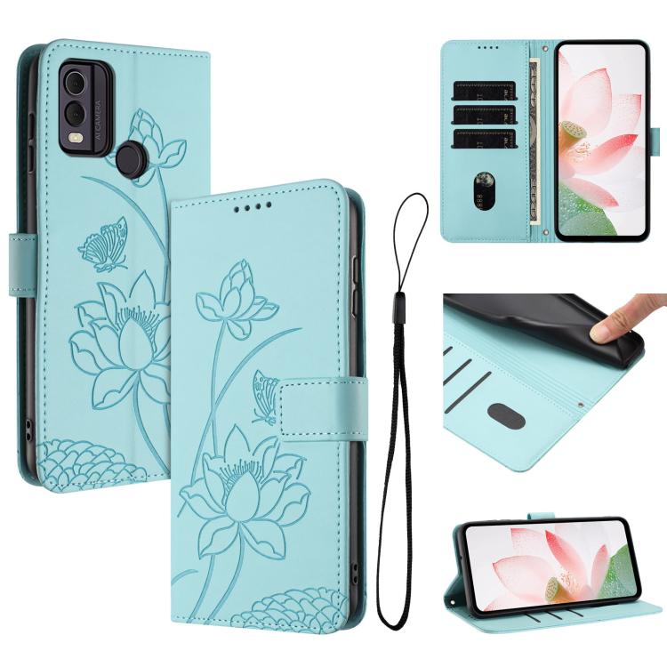 For Nokia C22 Lotus Embossed Leather Phone Case with Lanyard(Green)