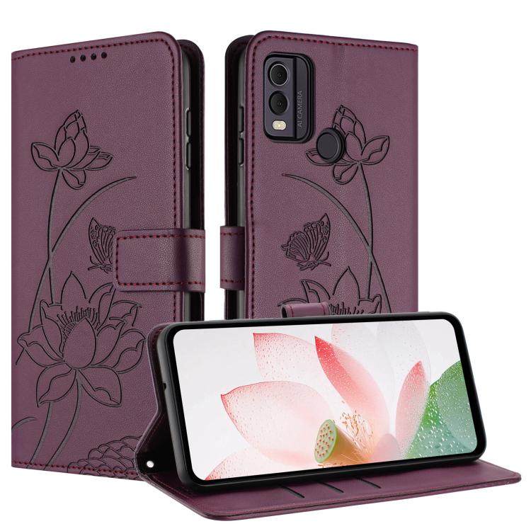 For Nokia C22 Lotus Embossed Leather Phone Case with Lanyard(Wine Red)