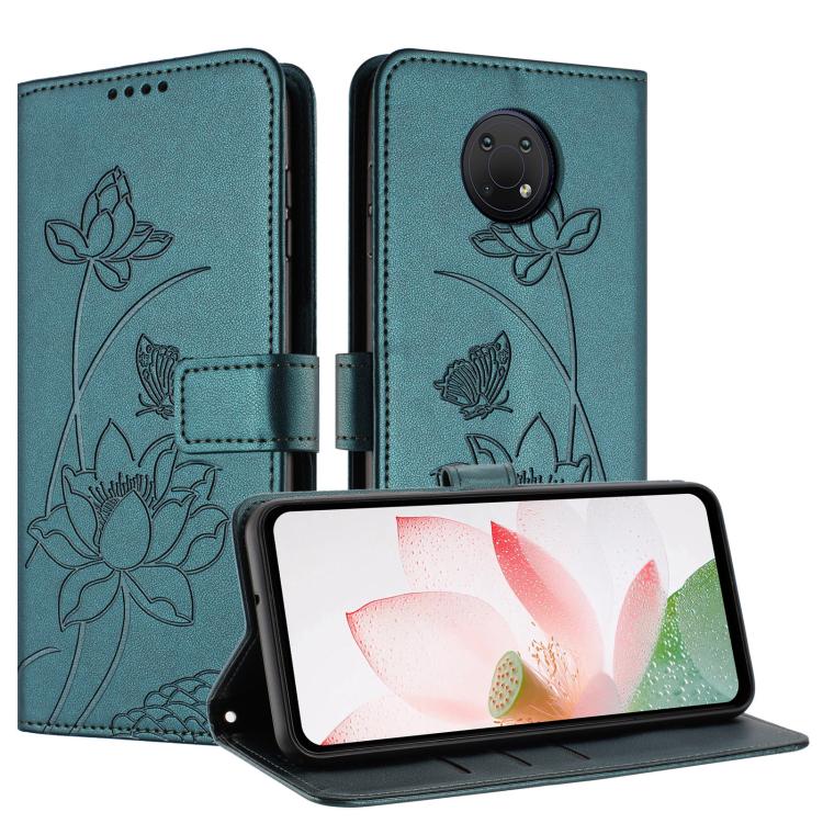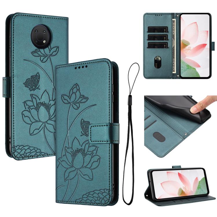 For Nokia G10 / G20 / G30 Lotus Embossed Leather Phone Case with Lanyard(Dark Green)