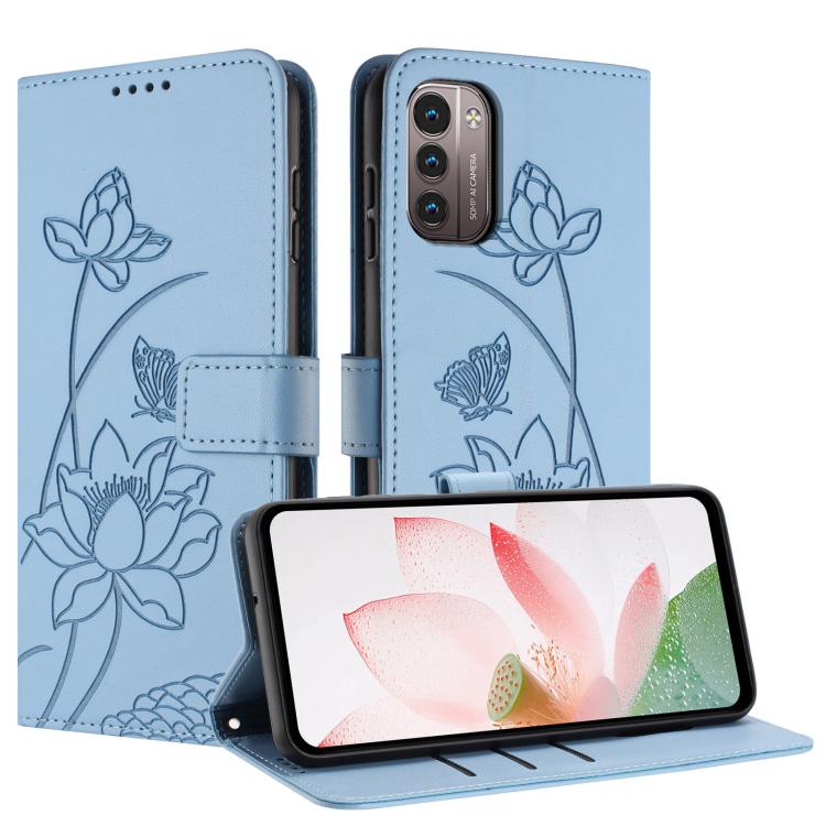 For Nokia G11 / G21 Lotus Embossed Leather Phone Case with Lanyard(Blue)