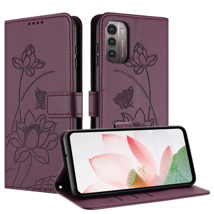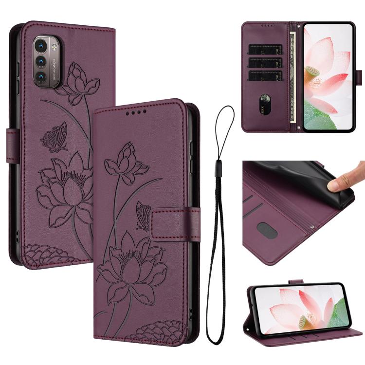 For Nokia G11 / G21 Lotus Embossed Leather Phone Case with Lanyard(Wine Red)