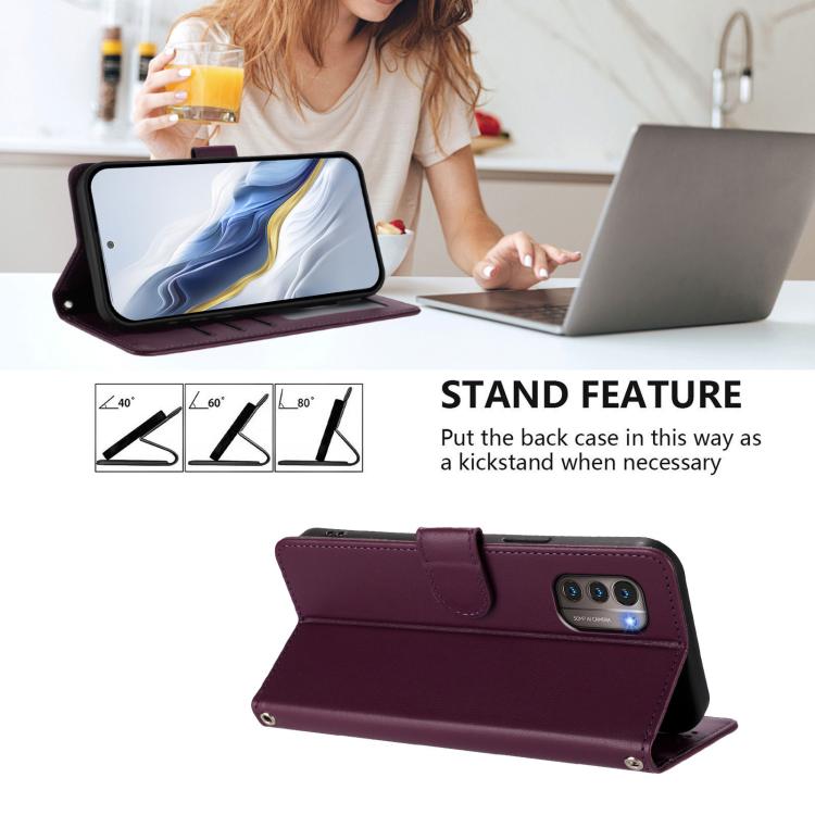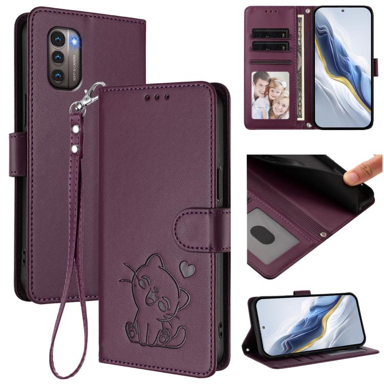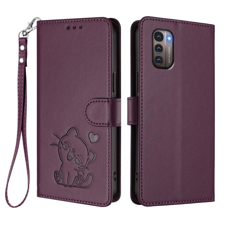 For Nokia G21 4G / G11 4G Embossed Heart Cat Leather Phone Case with Hand Strap(Dark Purple)