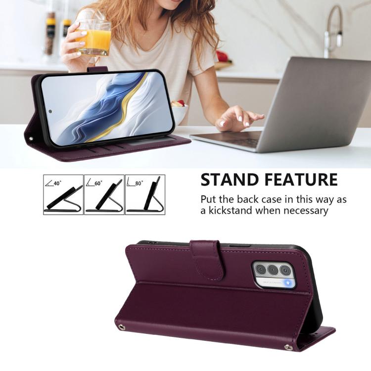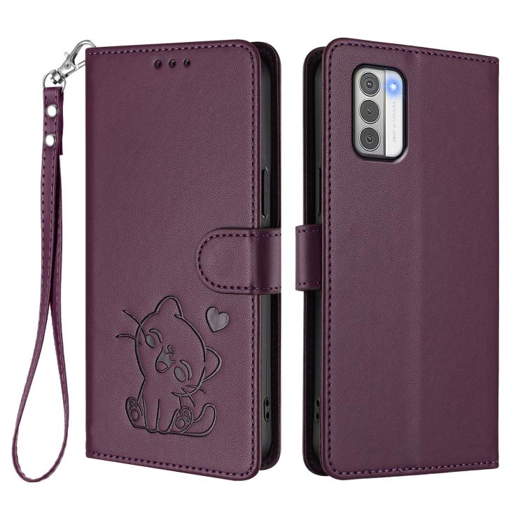 For Nokia G42 / G310 Embossed Heart Cat Leather Phone Case with Hand Strap(Dark Purple)