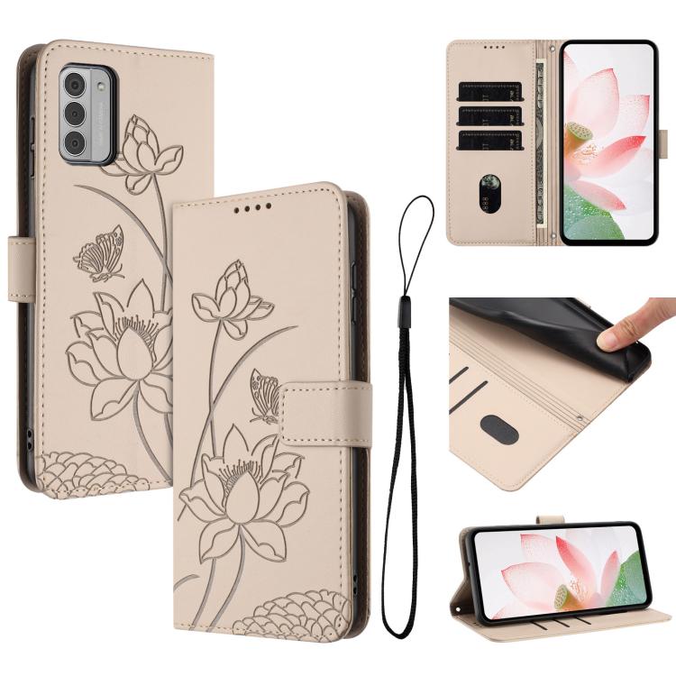 For Nokia G42 Lotus Embossed Leather Phone Case with Lanyard(Beige)