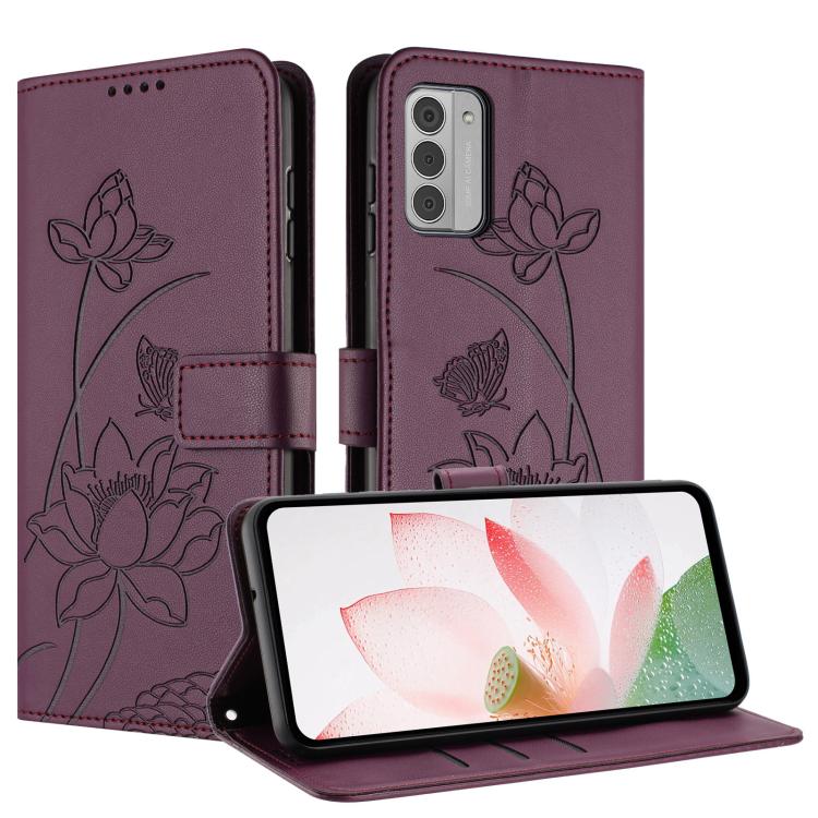 For Nokia G42 Lotus Embossed Leather Phone Case with Lanyard(Wine Red)
